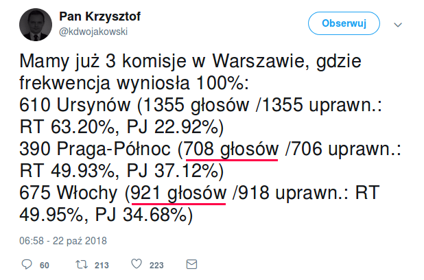 Nie jestem zszokowany wynikem Warszawy, ponieważ od dawna wiadomo, że warszawiacy wybierają złodziei.