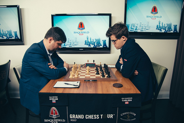 Drugi raz w tym turnieju Magnus Carlsen stawił czoło Partii Szkockiej, ale tym razem z innym wynikiem. Ponownie mistrz świata nie wykorzystał przewagi pionka w końcówce. Obrona jego przeciwnika była prostolinijna i Carlsen niezbyt silno próbował wygrać, gdyż wiedział, że to nie zaowocuje. W wywiadzie po partii zapytano go, czy pokonał rozczarowanie z poprzedniej rundy. Bardzo żałował, że nie dostrzegł krytycznego momentu w partii, ale pozostaje optymistycznie nastawiony do swoich szans.
