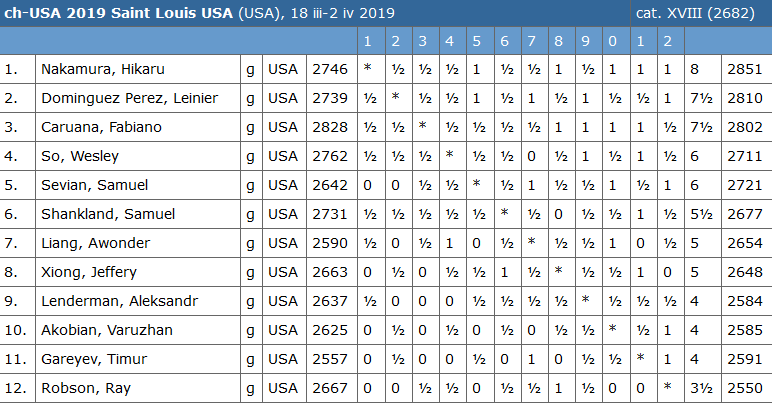 Mistrzostwa Stanów Zjednoczonych odbyły się w dniach 20 marca – 2 kwietnia 2019 w Saint Louis.