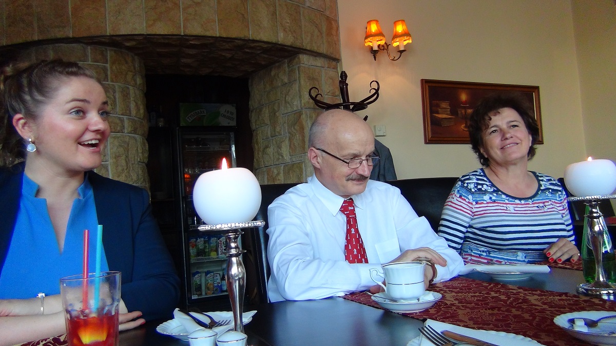 Spotkanie w Hotelu Europejskim. Od lewej: Zbigniew Nagrocki, Kamila Kałużna (skarbnik MZSzach), Andrzej Irlik (wiceprezes MZSzach), Wiesława Duda (mama naszego najlepszego szachisty), Jacek Czepczyk (dyrektor Hotelu Europejskiego), Jan Kusina (prezes MZSzach) i Elżbieta Kusina